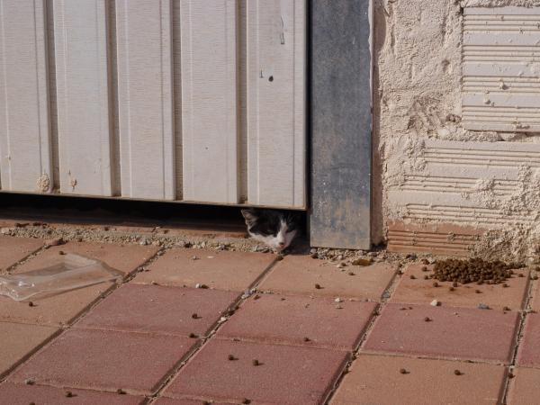 nadie pregunta por Mina. ahora ha perdido el miedo y se acerca a recibir caricias corriendo y maullando. es una pena que no pueda estar en una casita. ! pero corre peligro porque cruza la calle y tambien porque puede ser envenenada. :(